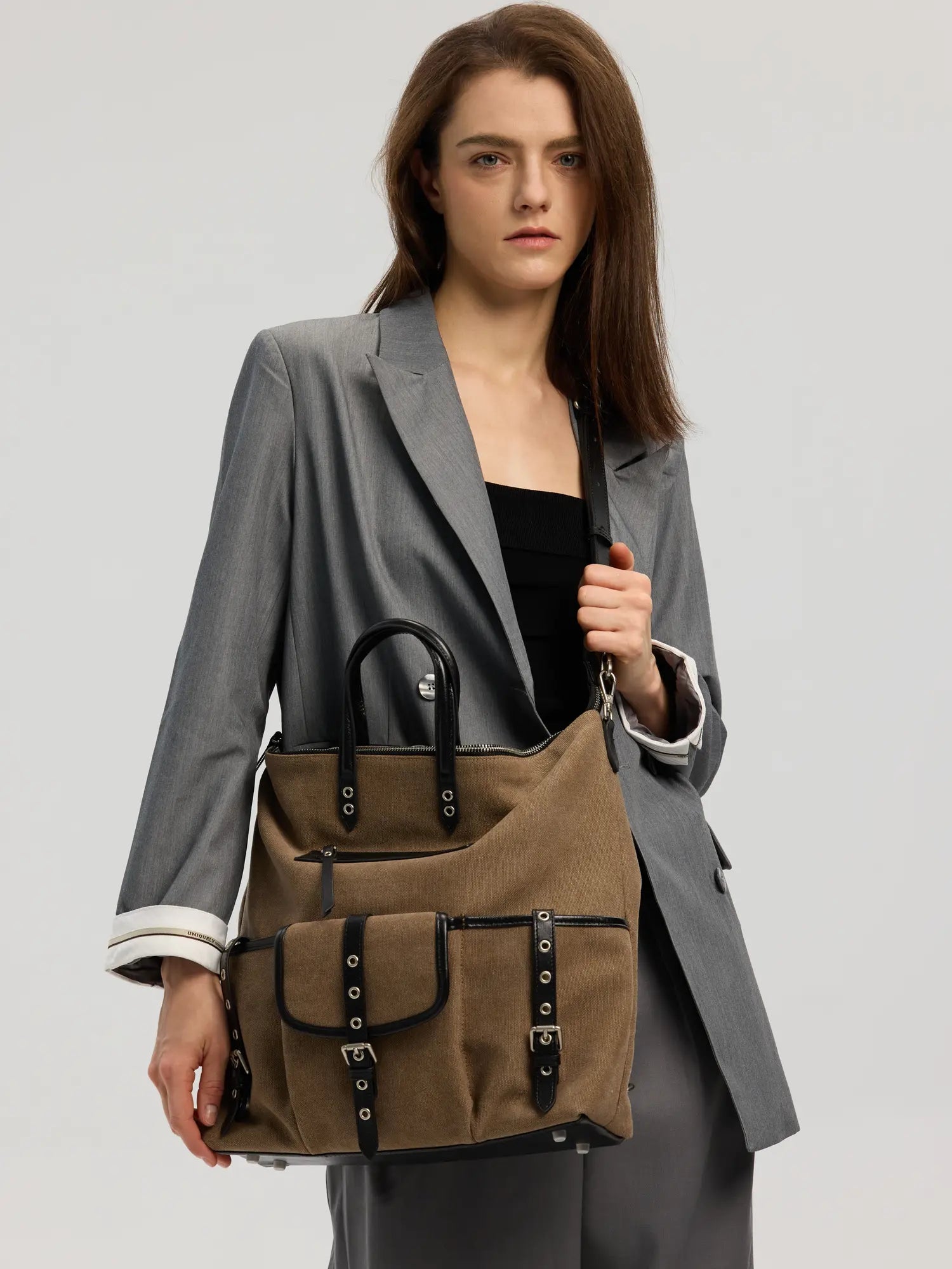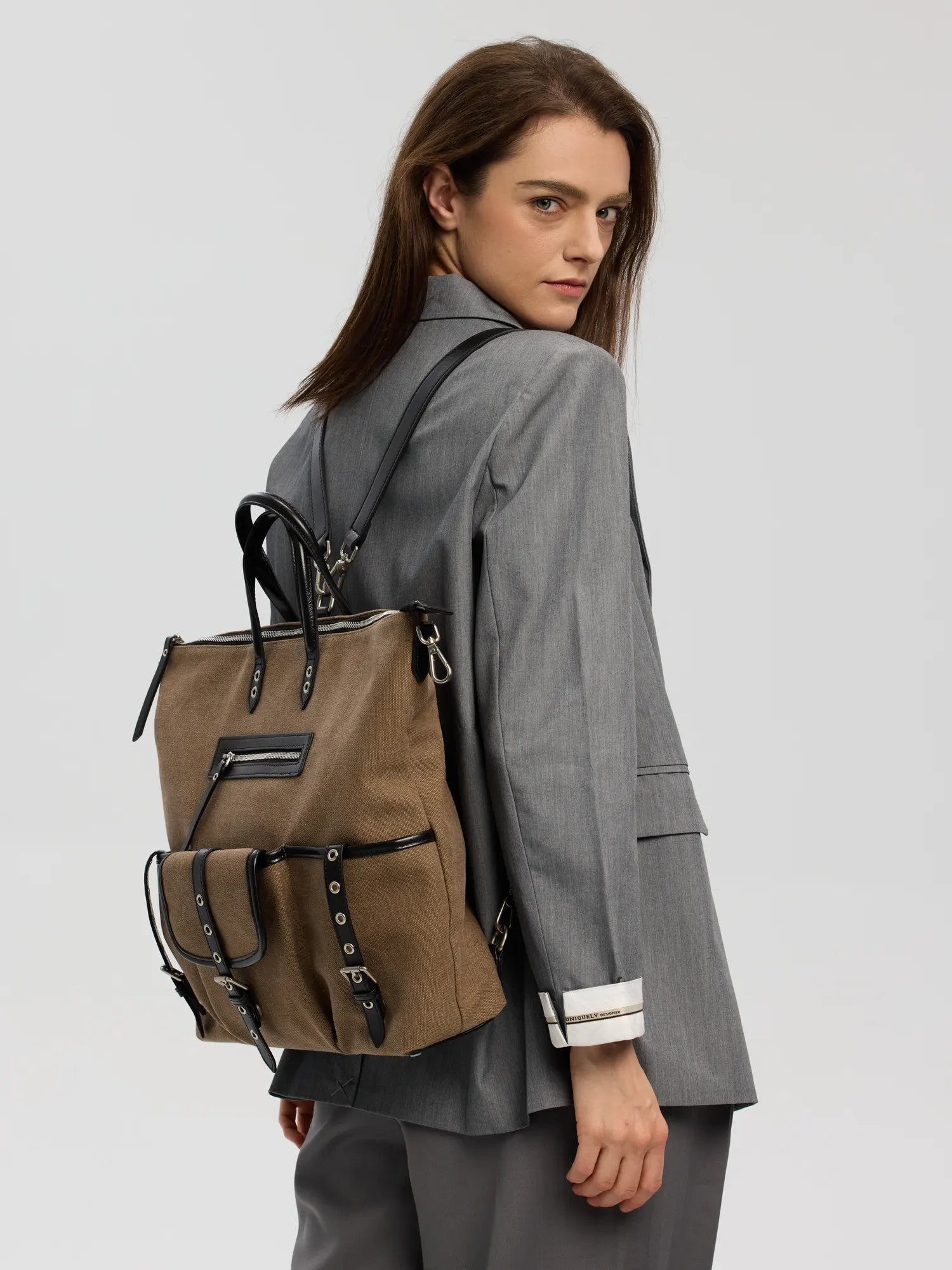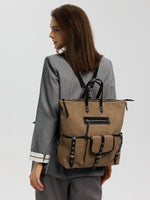 This isn't just a bag; it's a high-capacity equipment system. Engineered with a brilliant foldable design, it transforms effortlessly from an authoritative office Tote into a slouchy, architectural Backpack. Crafted from rugged Dune canvas spliced with premium leather, it swallows a 16" laptop and weekend essentials without losing its runway-ready silhouette.