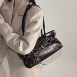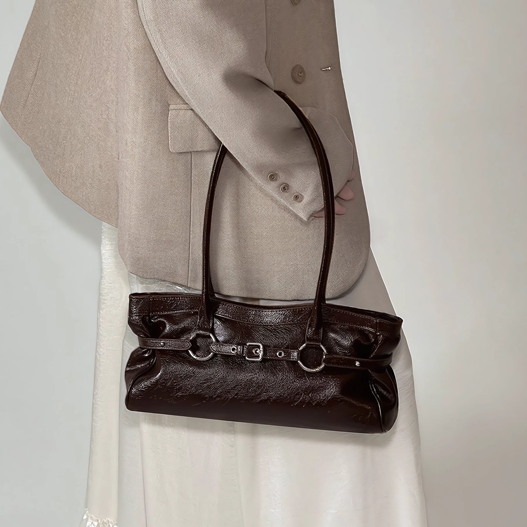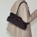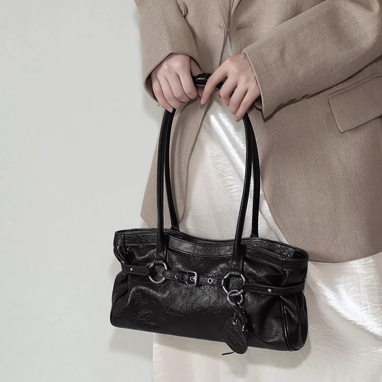 A little retro, a lot of cool. City Heartbelt pairs a sleek bowling silhouette with soft, glazed leather that gets better with every wear. The belted wrap and ring hardware add just the right edge, while the extra-long handles sit comfortably on the shoulder for coffee runs, commutes, and dinner after. Finished with a tiny heart charm because details matter. Available in deep Coffee and classic Black.
