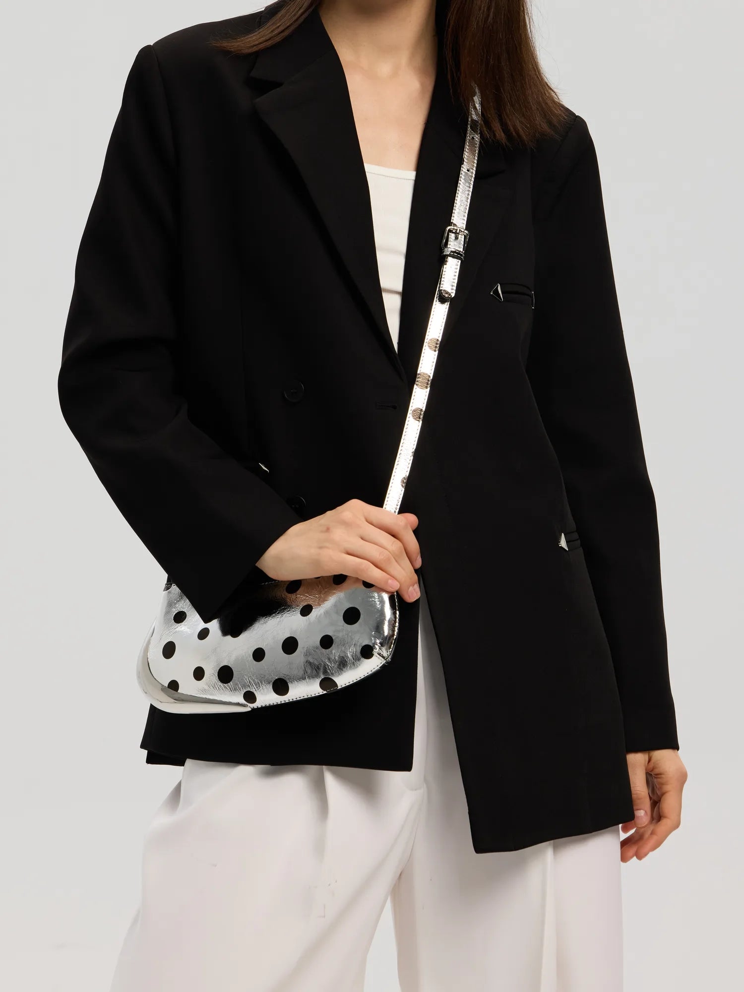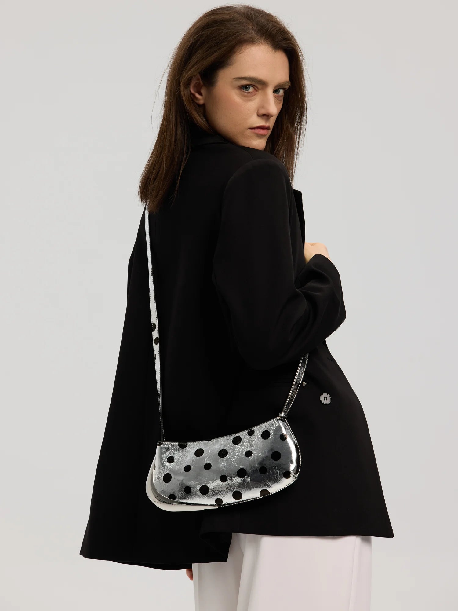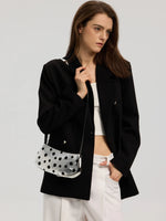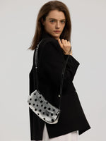 The Avant Metal-Corner Baguette · Silver Polka Dot Leather