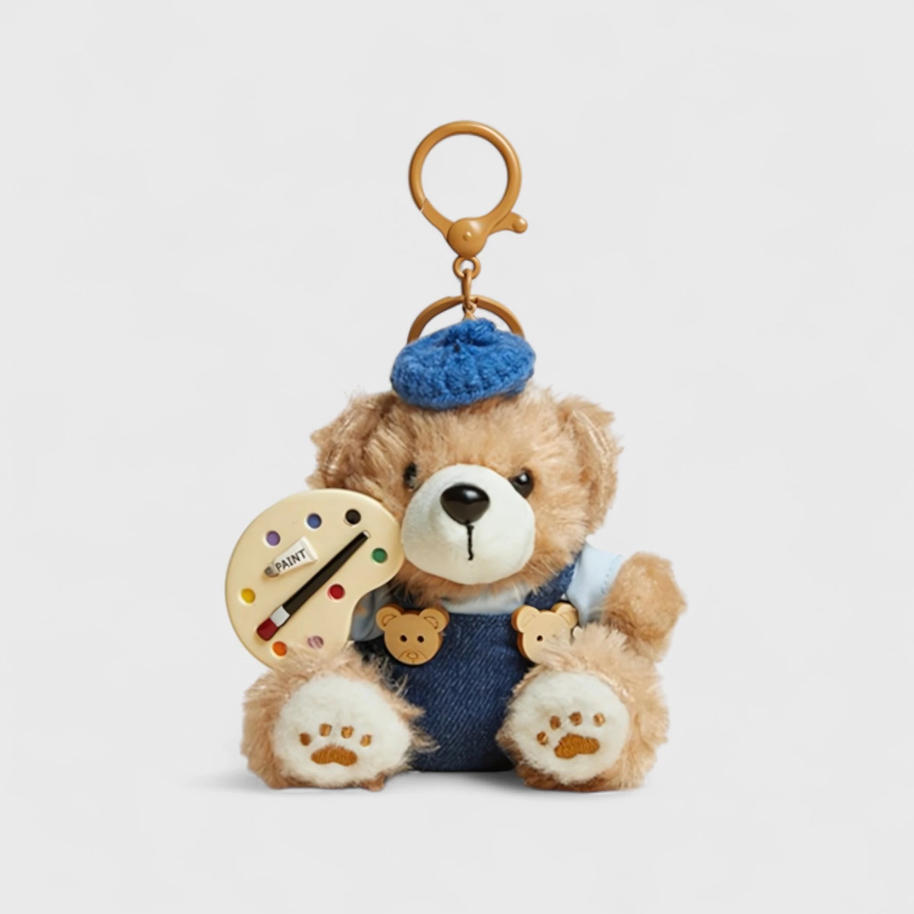 A tiny dose of joy for your favorite bag. Our Baker Bear is a soft plush charm with a secure alloy clip that snaps onto totes, crossbodies, backpacks, or keys in a second. Choose a style that matches your vibe—tray-holding baker, cozy knit sweaters in pink/blue/beige, or the little painter in blue overalls. It’s the sweetest add-on at checkout and a lovely gift when you’re sending a bag to someone special.