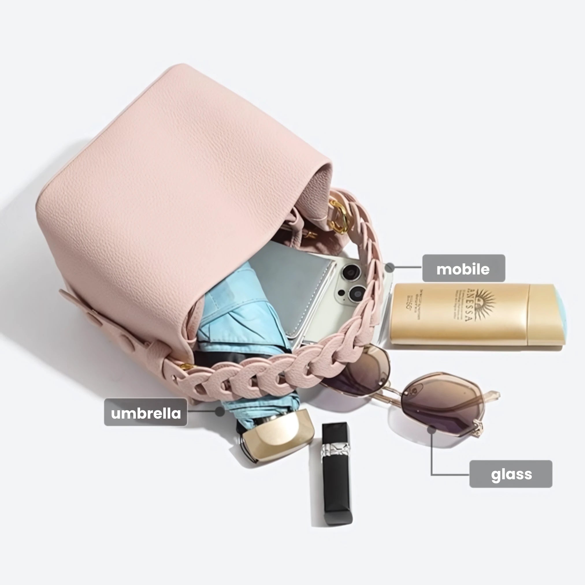 Hand-braided handle with a soft, cloud-like texture — easy to carry, easier to love.