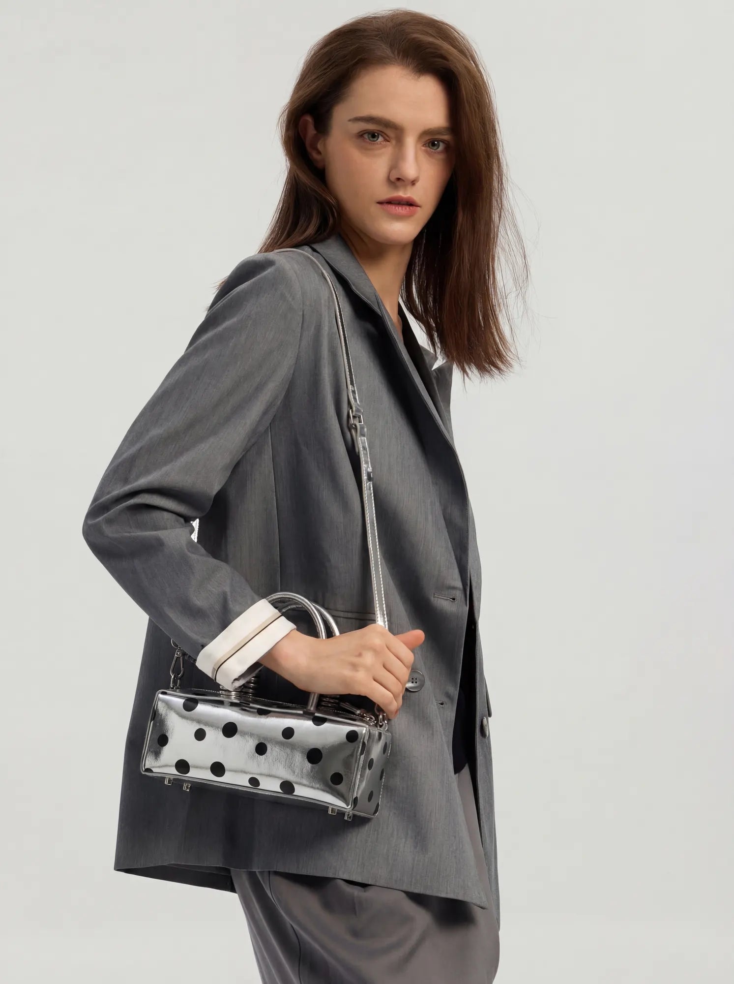The Bar Structured Baguette · Silver Polka Dot Leather